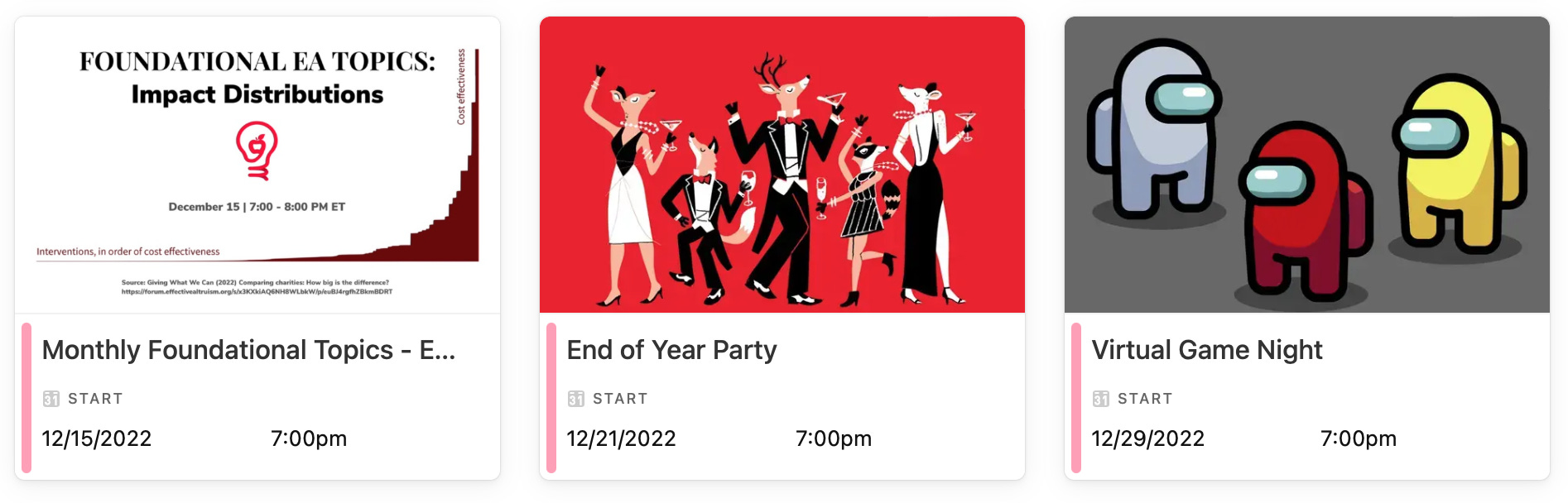 There are also many events in the broader EA community you can join online! Here are a few below: